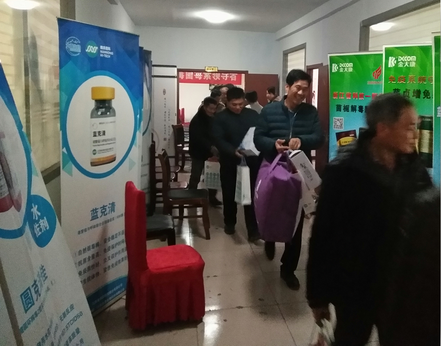 會(huì)中,我們特邀浙江金達(dá)康集團(tuán)技術(shù)經(jīng)理?xiàng)罱鸫ɡ蠋煘樯鐔T們講解《常見豬病預(yù)防及獸藥的應(yīng)用》;邀請(qǐng)南農(nóng)高科技術(shù)經(jīng)理王春峰老師專業(yè)分析《豬繁殖與呼吸系統(tǒng)綜合癥(藍(lán)耳病)》。