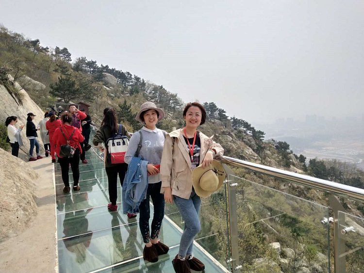 其中玻璃棧道位于多福山風景區(原墮崮山)內,建于景區主峰碧霞元君祠東側峭壁之上,全長130米,落差88米,20平觀景看海臺,玻璃棧橋探險讓我們盡享不一樣的激情與刺激。立于棧道之上,環視四周高山美景,峭壁嶙峋。俯視下方,高達百米,遙看大海一望無際,梯田遍布盡收眼底。觀賞美景的心境,激情澎湃的刺激,盡在“多福山”玻璃棧道。