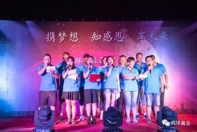 晚上18:58分,鳴環(huán)禽業(yè)2017年“攜夢想 知感恩 享未來”消夏晚會正式開始,鳴環(huán)禽業(yè)的親友團(tuán)及公司員工、家屬等200余人參加了晚會。