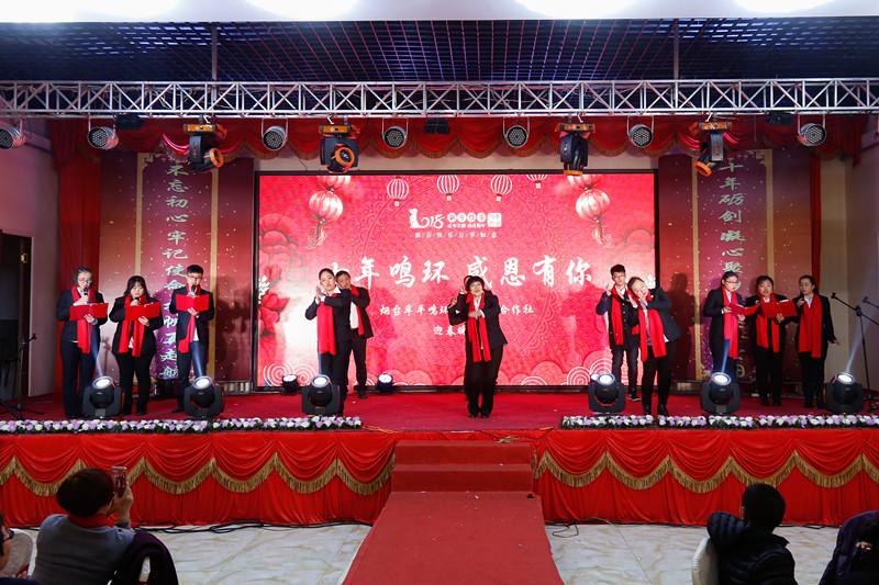 2018年2月5日,鳴環禽業“十年鳴環,感恩有你”迎春年會在牟平沁源軒大酒店隆重舉行,合作社員工及家屬近200人參加了年會。