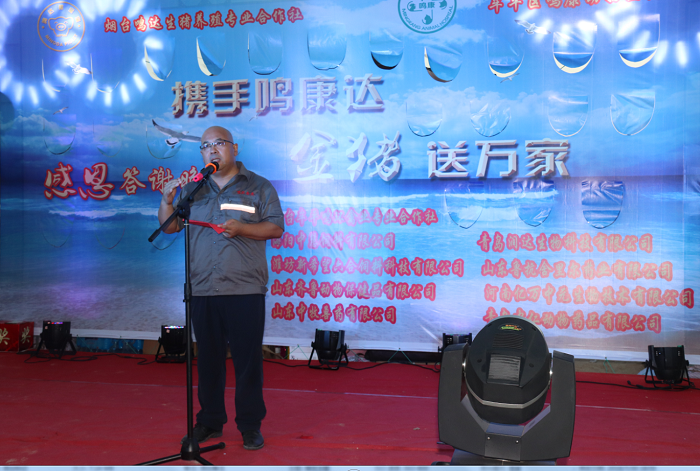 7月30日晚,牟平區養馬島海水浴場賓朋滿座,熱鬧非凡。由鳴環禽業主辦的“攜手鳴康達 金豬送萬家”感恩答謝晚會在這里隆重舉辦。來自煙臺鳴達生豬養殖專業合作社的社員和牟平區鳴康動物醫院的會員們共計300余人參與了本次活動。