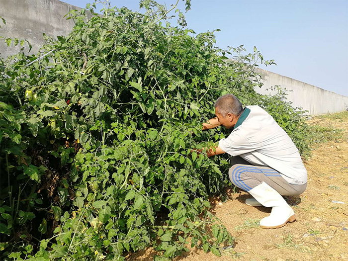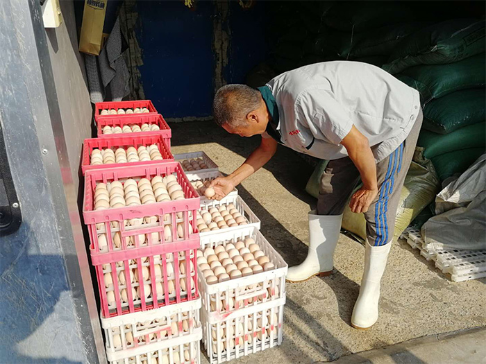 姜文明十分注重自己舍內的生物安全和細節管理,所有物品全部歸類擺放, 物料間的蛋箱、蛋托清理后擺放的井然有序。在進入雞舍時,姜文明堅決做到洗手、消毒,穿工作鞋和工作服,攜帶的工具在進入雞舍之前更是要進行嚴格的消毒程序。在完成好自己的本職工作之余,他在自己雞舍旁開辟了一個小菜園,種上了西瓜和西紅柿。