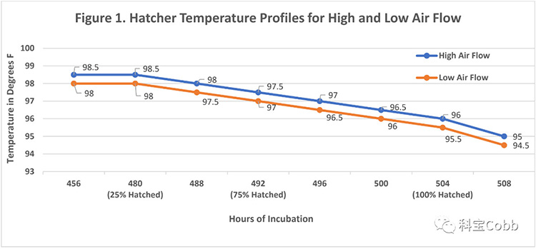 圖1. 高空氣流速和低空氣流速的出雛器溫度程序