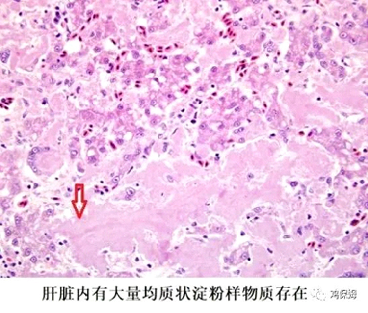 近幾年蛋雞、種雞普遍出現病理現象——育成后期、開產高峰期前后出現連續的肝腫大、肝出血斑、溶血性腹水。其病因有不同的解釋,實驗檢測派認為是白血病、傳貧、細菌等,經驗臨床派推測方向有細菌疫苗來源內毒素、脂肪肝、腸源內毒素、霉菌毒素等,各不相同。針對該病癥,可引出一個病理性概念——淀粉樣變。它與上述肝腫大、肝出血等關聯,具體情況請看下文。